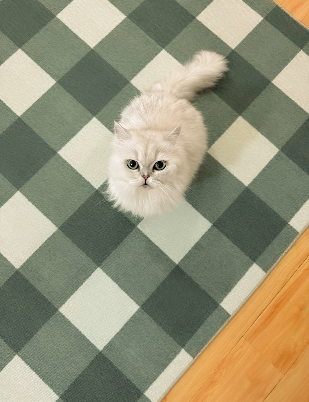 Retro Grid Green Washable Rug