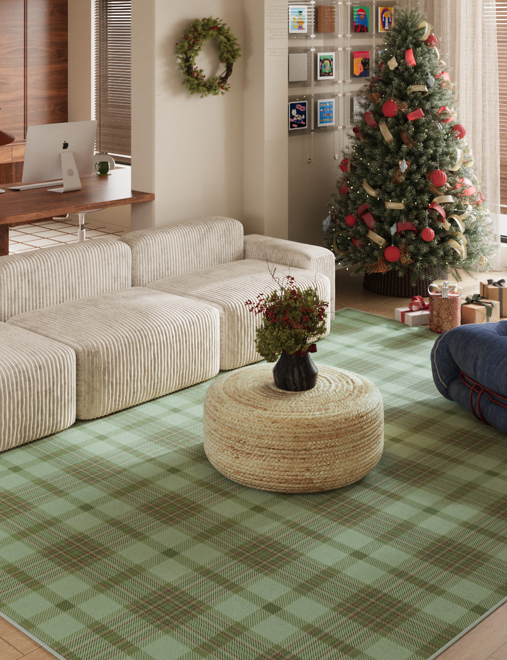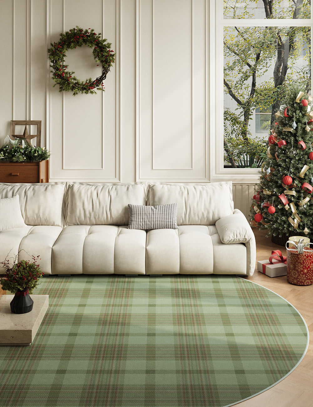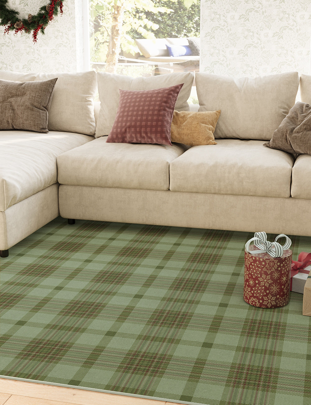 Classic Plaid Willow Green Washable Rug
