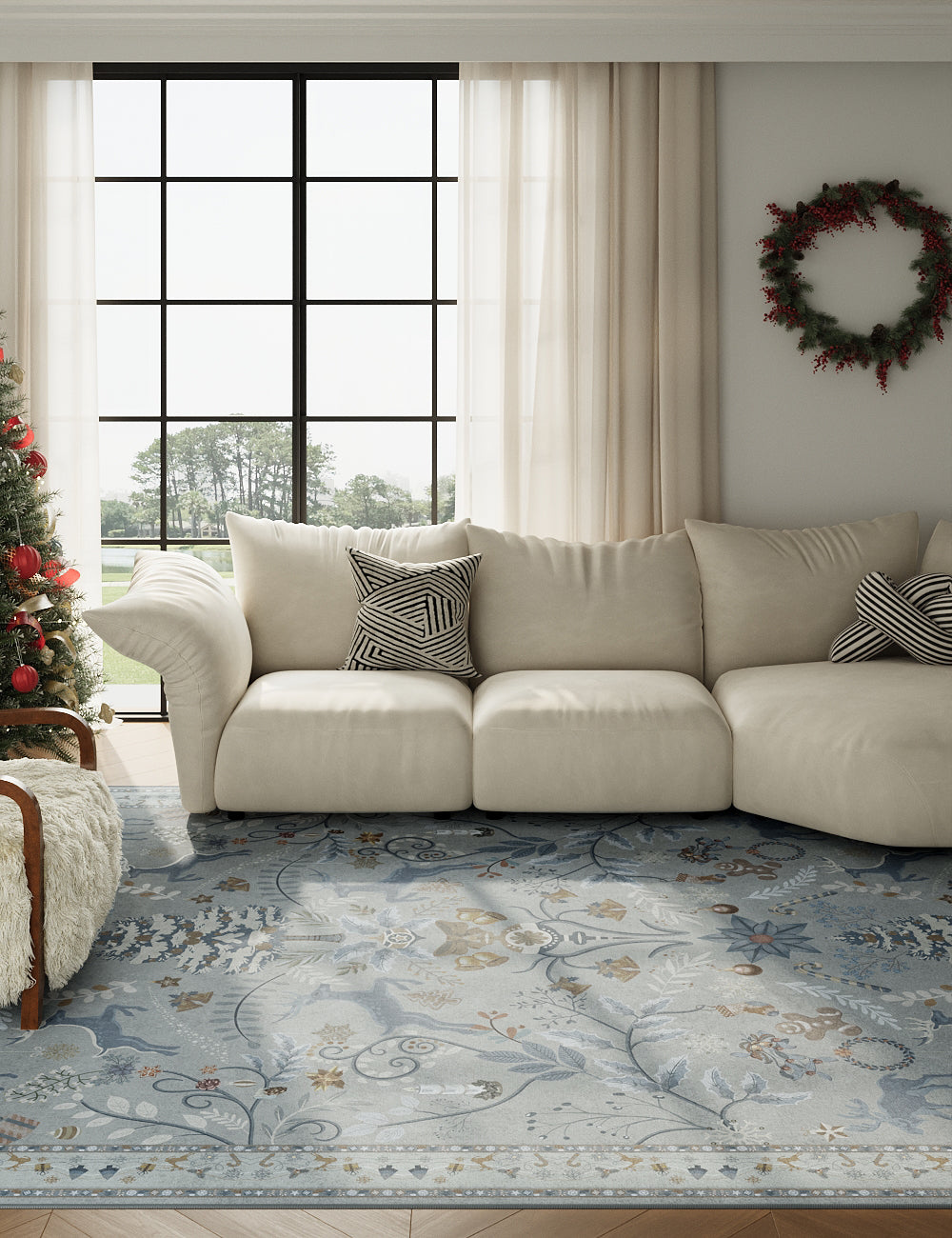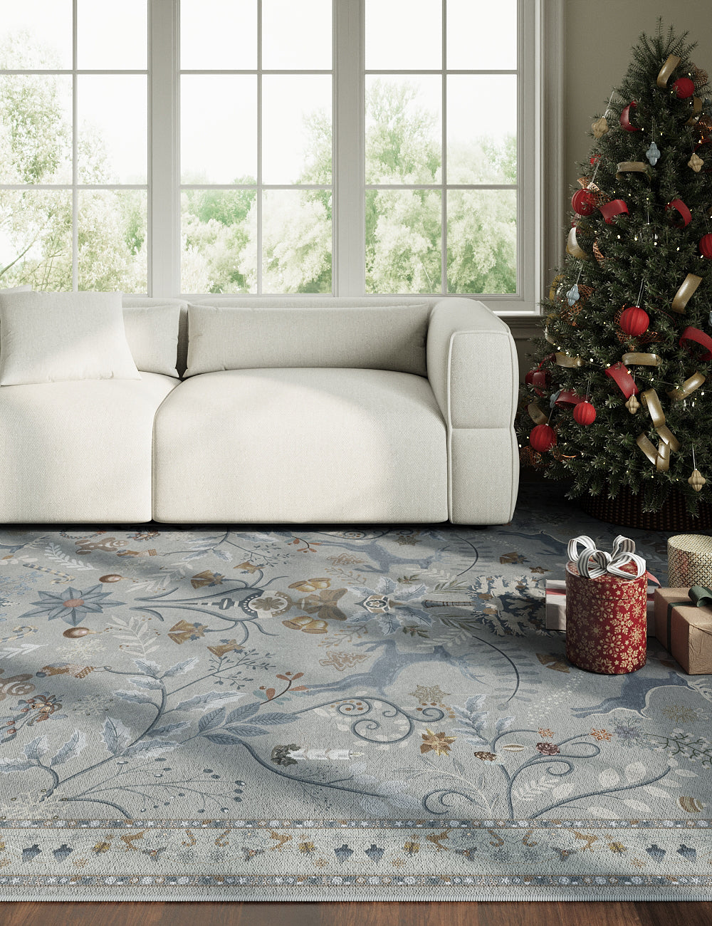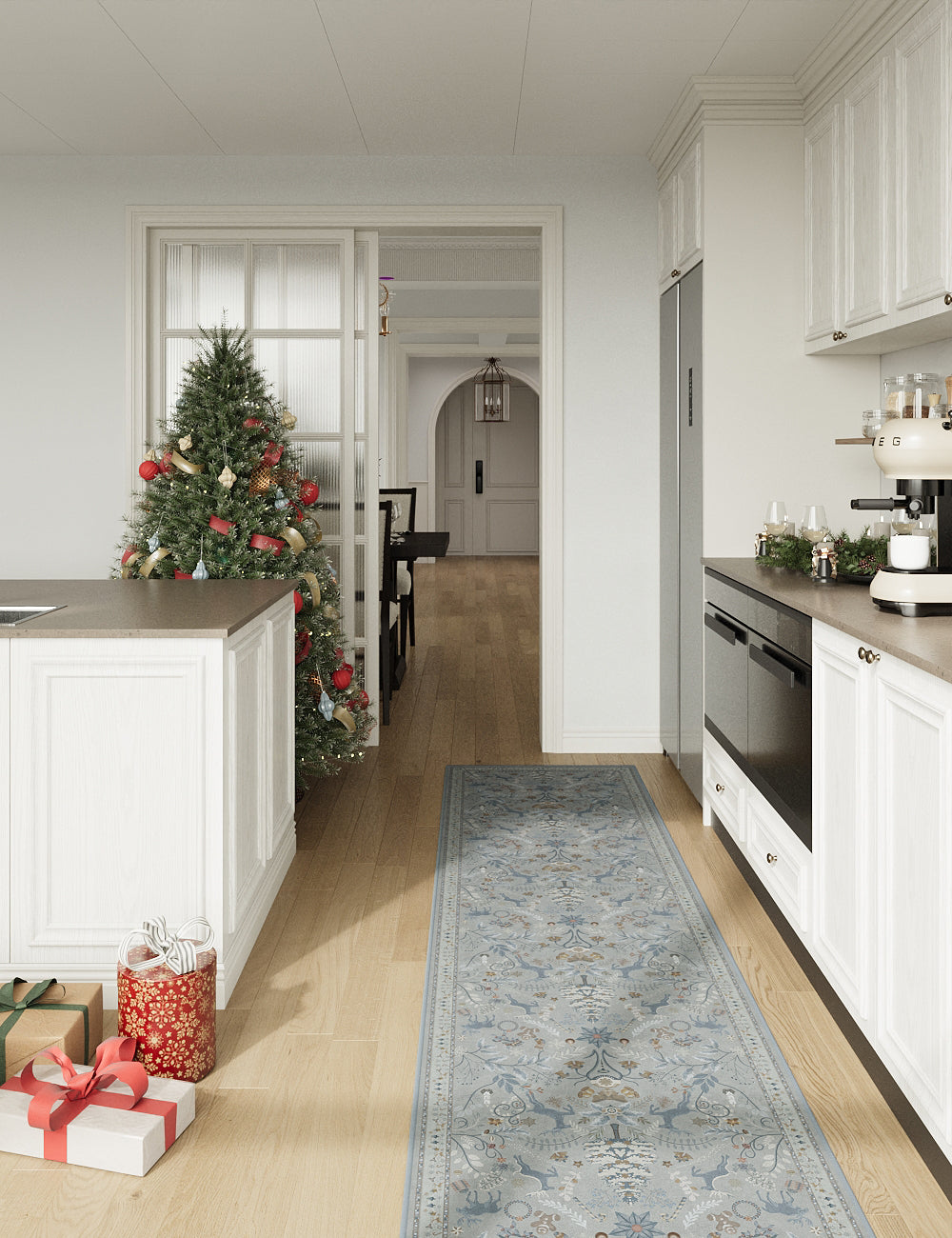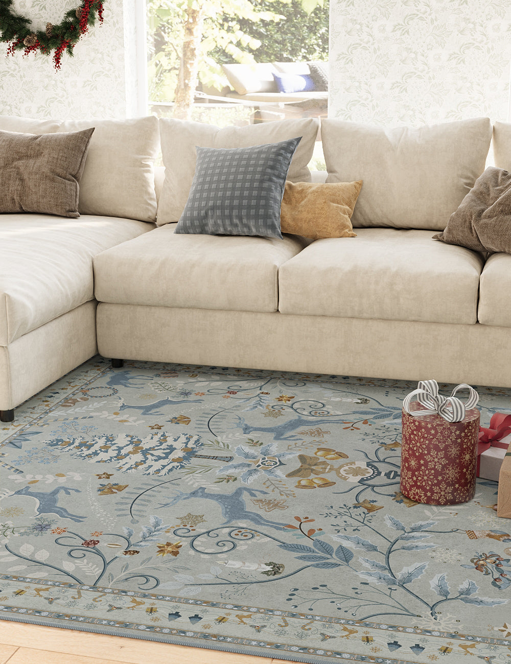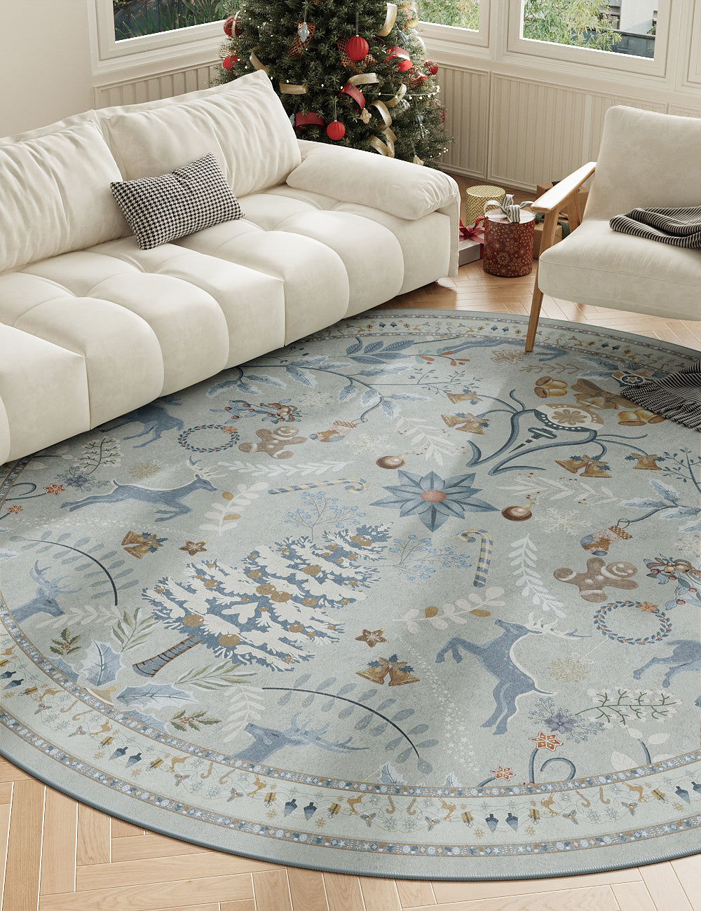 Santa's Carpet Icy Blue Washable Rug (Christmas Edition)