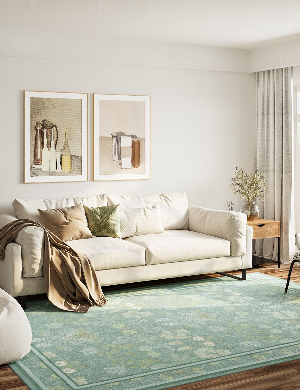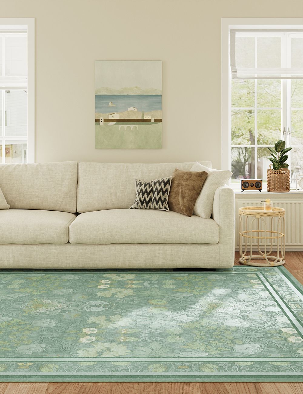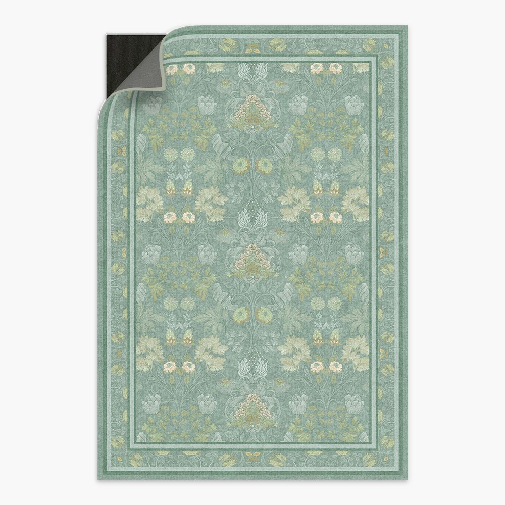 Morning Garden Mint Green Washable Rug