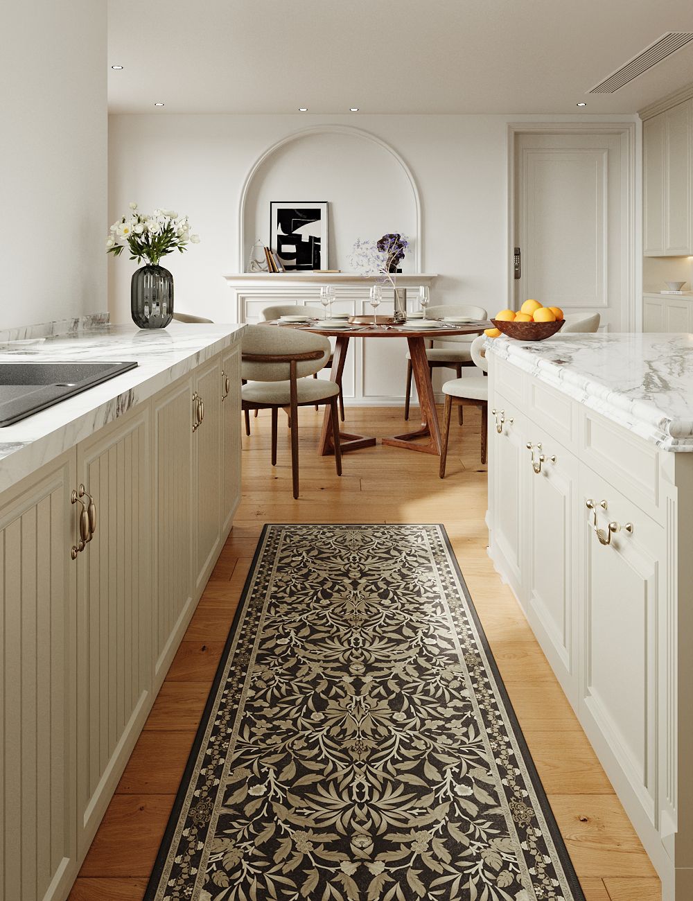 Not only is the design gorgeous, but the quality is top-notch too. The rug is soft underfoot, and paired with the pad, it stays put perfectly on my tile floors - no slipping or sliding!