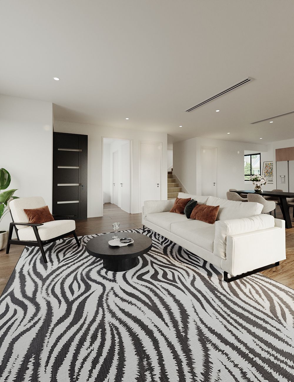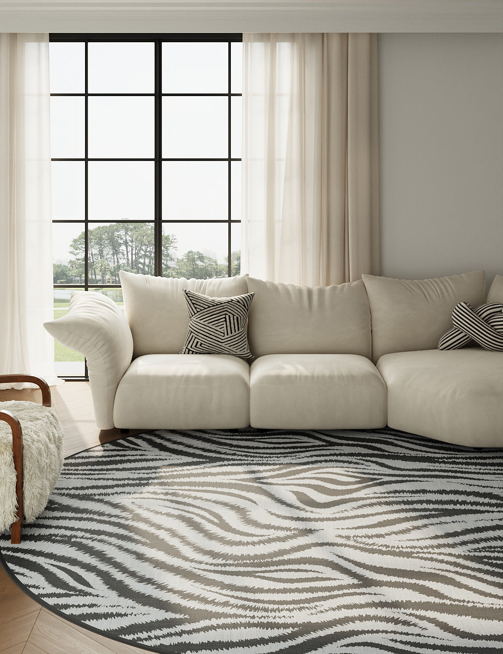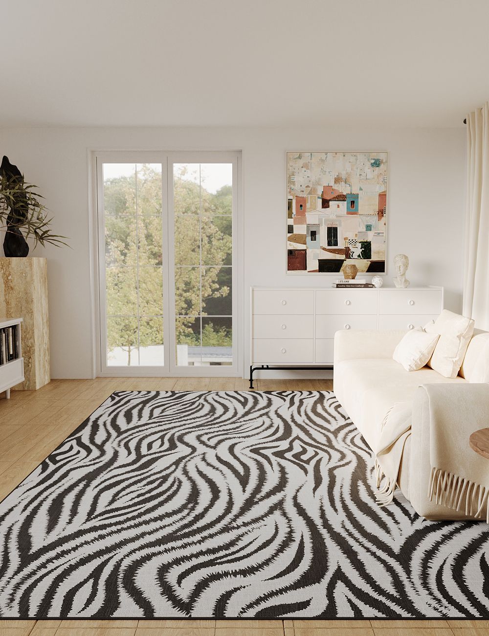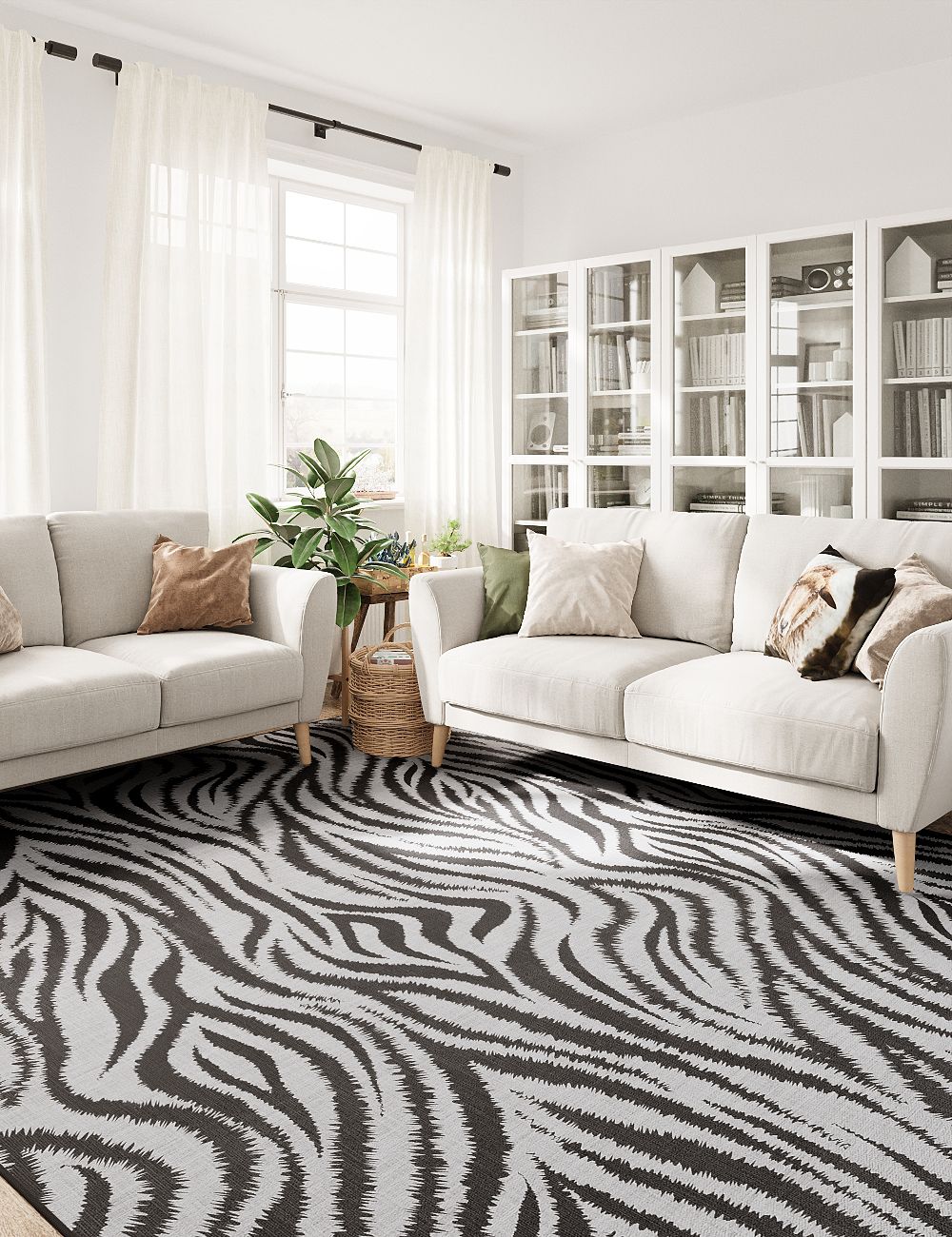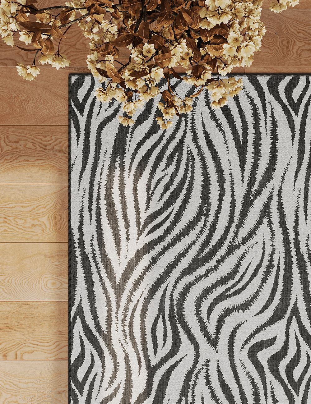 Slender Leaves Zebra Black Washable Rug