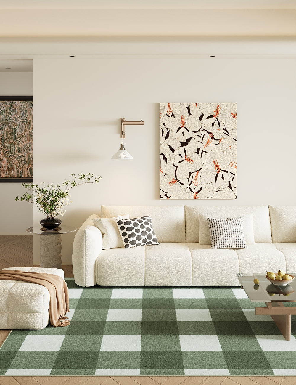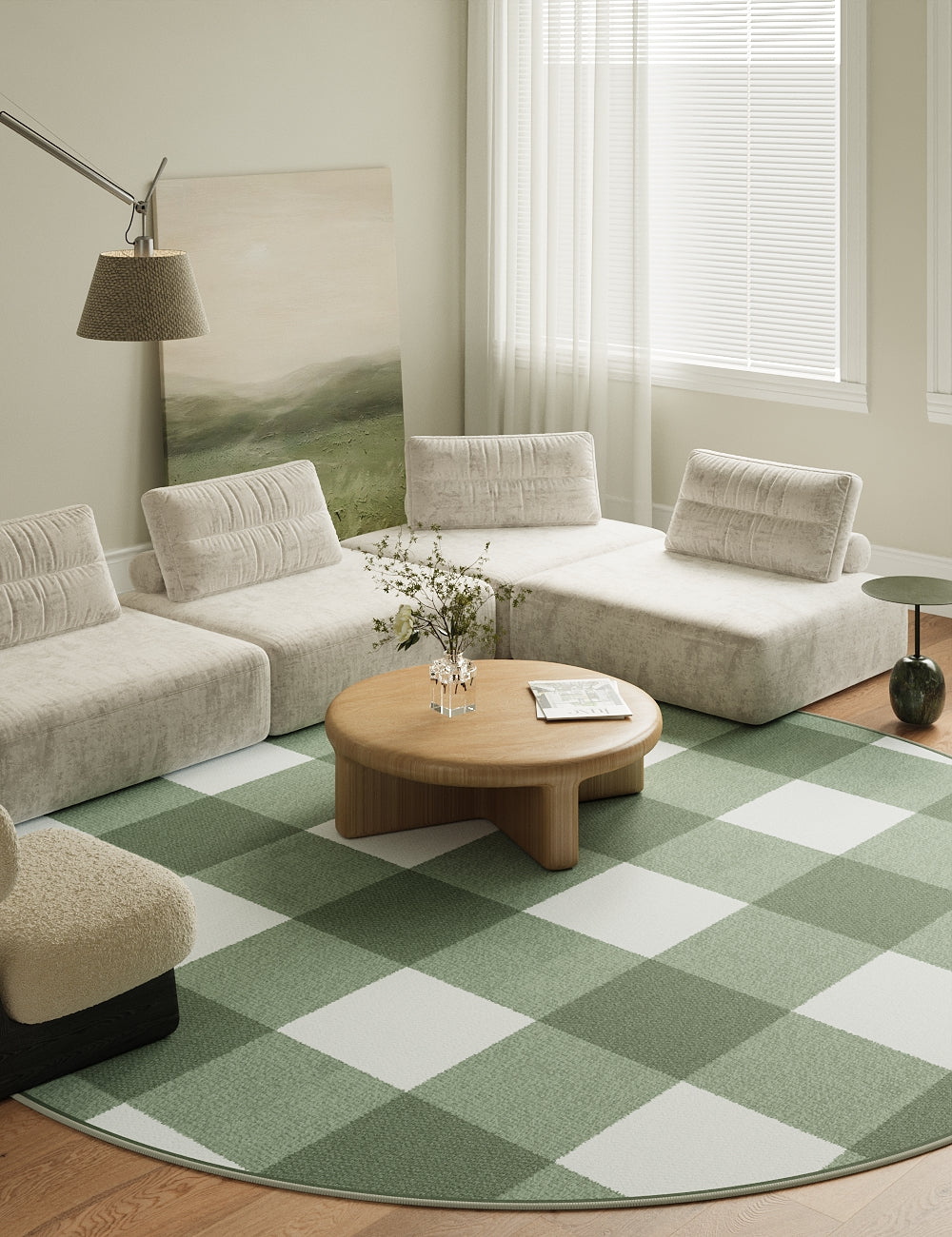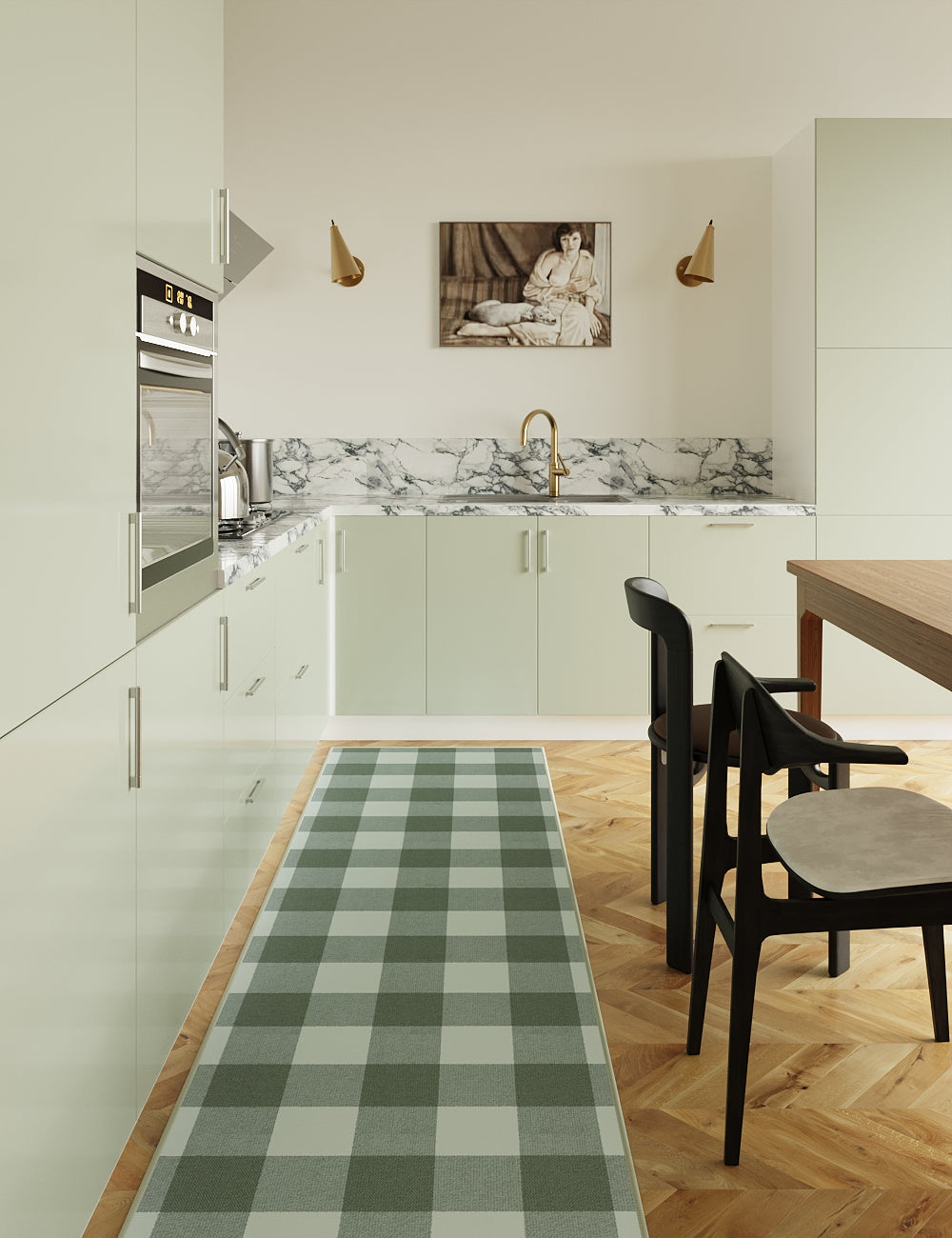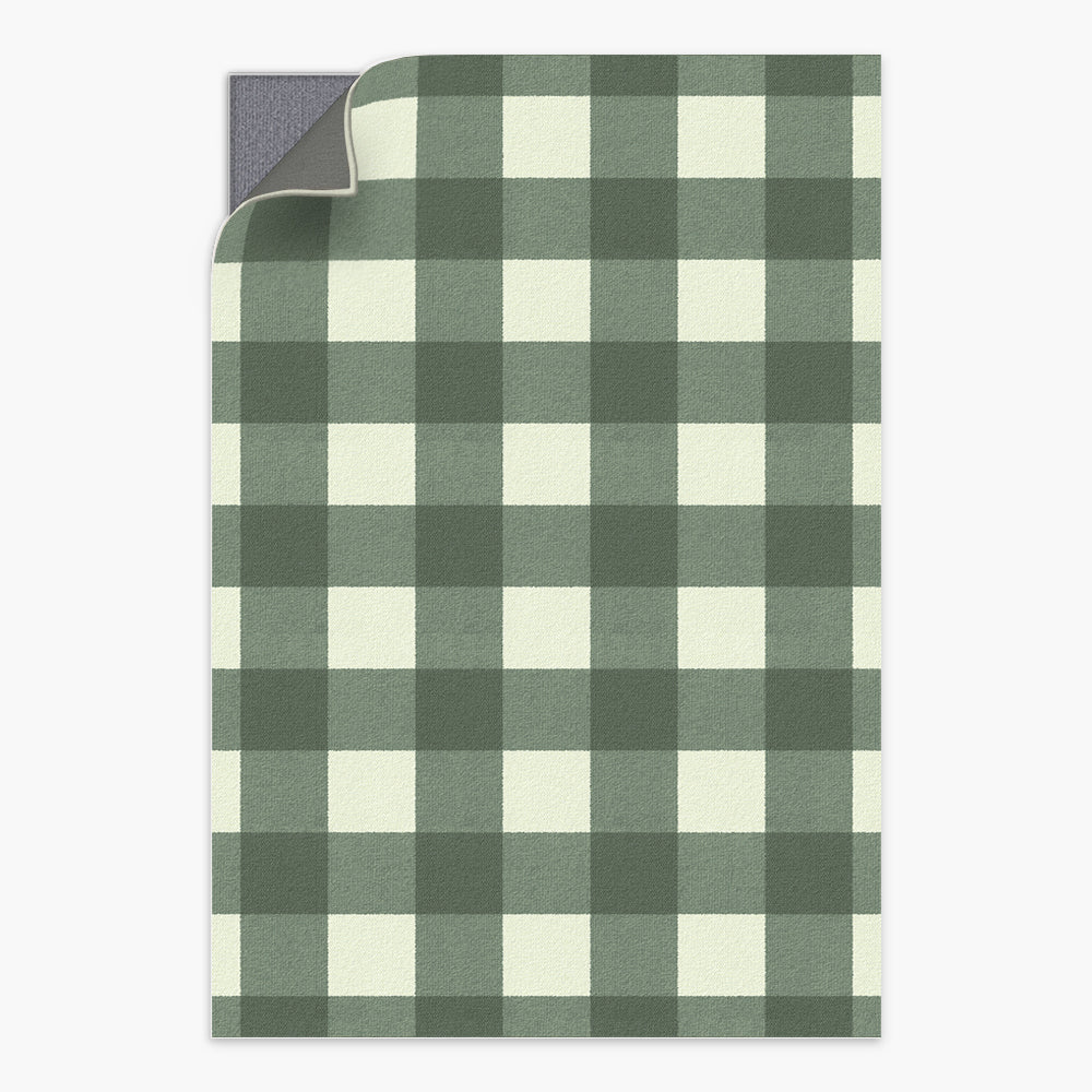 Retro Grid Green Washable Rug