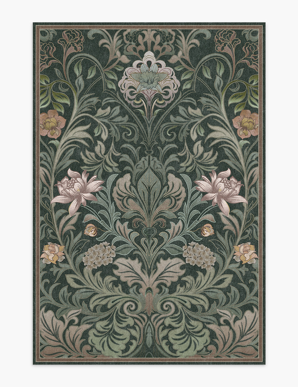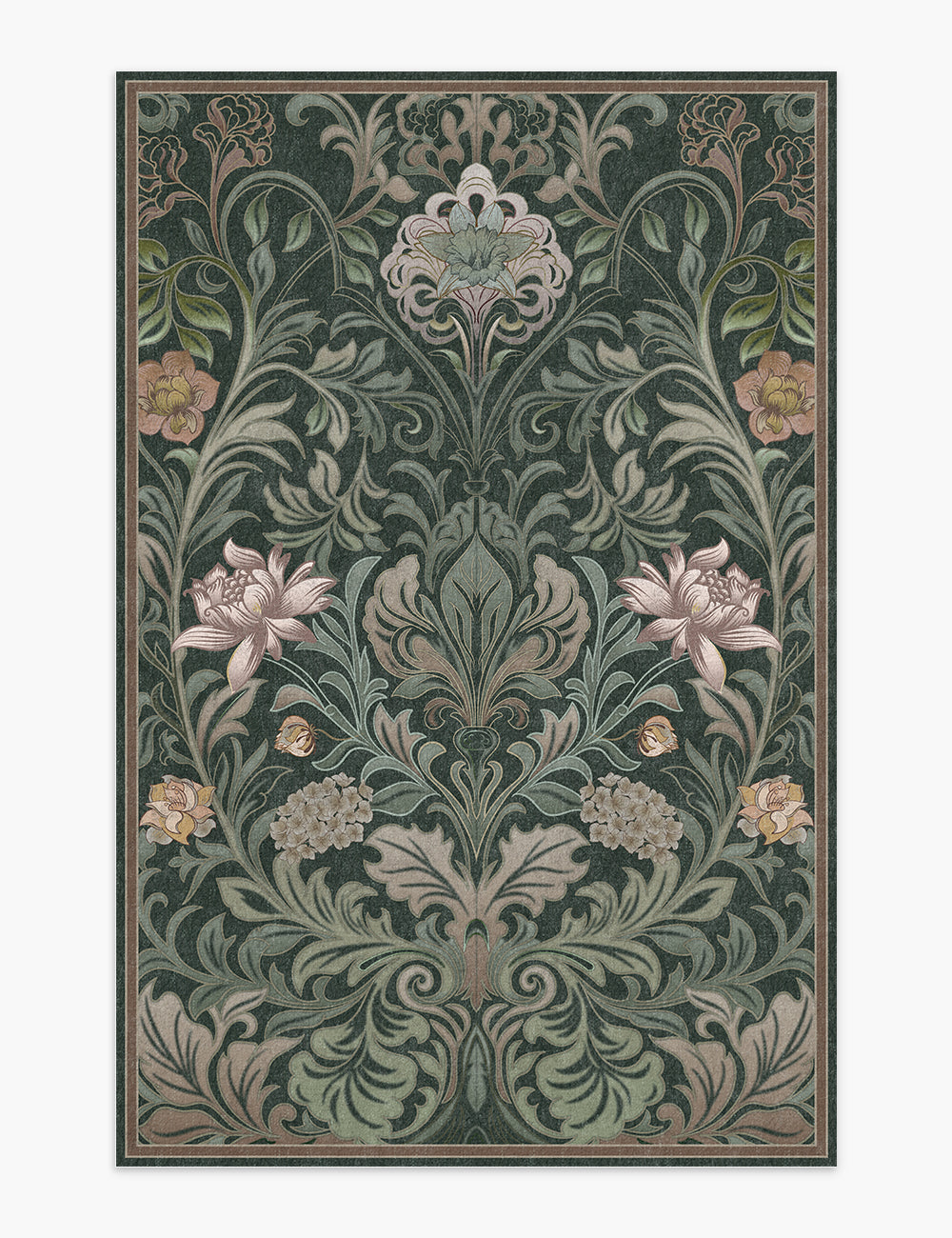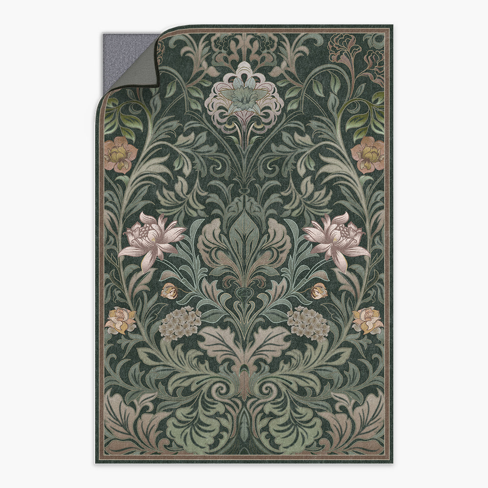 Verdant Tapestry Dark Garden Washable Rug